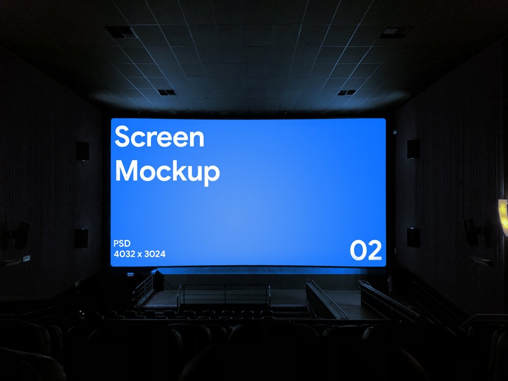 A mockup of a theater/ cinema scene with a screen/display , featuring light reflections and shadows